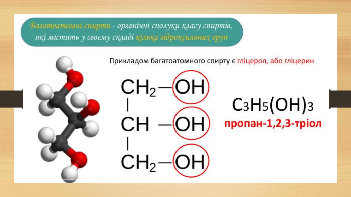 Багатоатомні спирти. Гліцерол. Підготувала Вчитель хімії Порічанського ЗЗСО Гузій Оксана