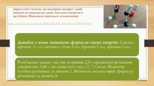 Хімічні властивості:1. Взаємодія гліцеролу з натріємhttps://www.youtube.com/watch?v=Xqyykg8g. CTQ2. Якісна реакція. Взаємодія з купрум (ІІ)гідроксидом https://www.youtube.com/watch?v=hr8 Fikh. G8z. I