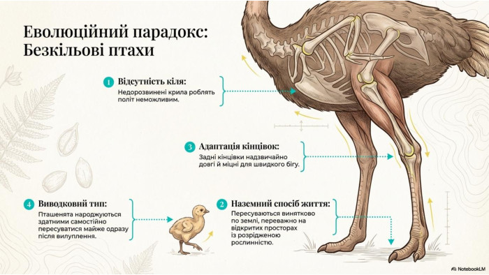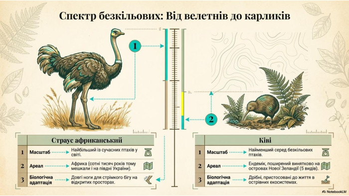 "Безкільові птахи. Роль птахів у природі і житті людини" 7 клас НУШ Підручник Балан.