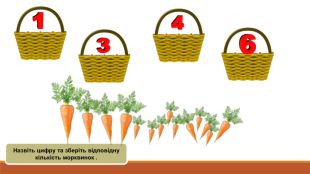 Назвіть цифру та зберіть відповідну кількість морквинок .