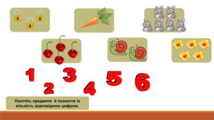 Полічіть предмети й позначте їх кількість відповідною цифрою.