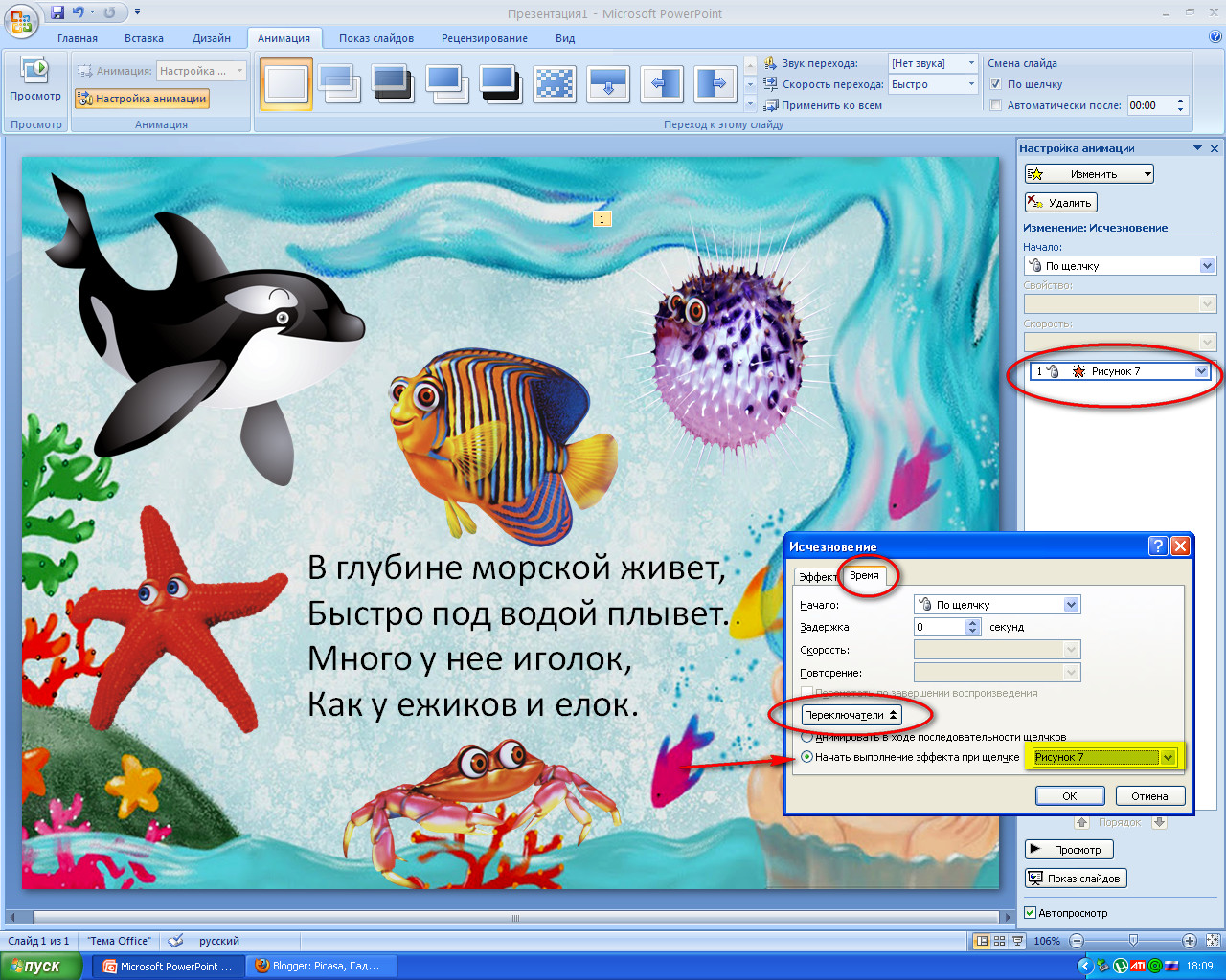 Завдання. Використання тригерів для створення інтерактивної гри «Відгадай загадки Русалочки» в PowerPoint 2010