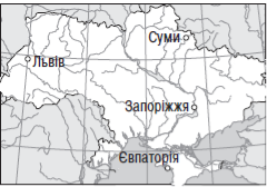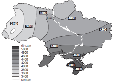 7.Яке з міст на картосхемі отримує найбільшу кількість сумарної сонячної енергії? (1 б)