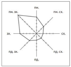 Розгляньте зображену на рисунку розу вітрів, побудовану за результатами спостережень за погодою в червні на одній з метеостанцій України. Визначте, яка погода переважала в цій місцевості протягом місяця. (1б)
