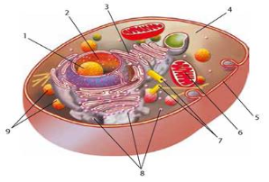 1.Розгляньте малюнок будови тваринної клітини. Укажіть ,що знаходиться під № 6.Які її функції? (2 б)