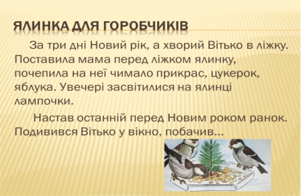 Прочитайте уривок із оповідання «Ялинка» М.Коцюбинського та виконайте наступні завдання.
