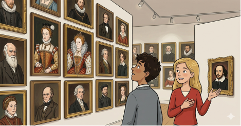 2. National Portrait Gallery (Faces of History) Characters: Harry and Mia