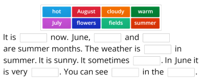 Завдання: заповнити пропуски в реченнях та розповісти про свою улюблену пору року за зразком тексту.