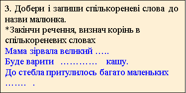 2. Прочитай текст. Спиши. Знайди і підкресли споріднені слова. Познач корінь.