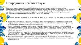 Природнича освітня галузь. На початку нового навчального року МОН радить педагогам організувати діагностику рівня сформованості результатів навчання в учнів у цікавій та мотивуючій формі. Це може бути квест, вебквест або інтегрований квест, що охоплює декілька предметів – фізику, хімію, географію чи біологію. Такий підхід допоможе не лише визначити «відправну точку» для подальшої роботи, а й зробить процес діагностики для школярів менш формальним і більш залучаючим. У подальшій освітній діяльності МОН пропонує активно застосовувати сучасні підходи до викладання:Інтерактивні симуляції та віртуальні лабораторії. Вони дозволяють учням проводити експерименти, відпрацьовувати практичні навички та закріплювати знання у безпечному віртуальному середовищі, що особливо актуально в умовах обмежених ресурсів. Робота з реальними даними та тематичними дослідженнями. Наприклад, аналіз кліматичних змін, вивчення динаміки населення України чи дослідження причин та наслідків спалахів захворювань. Це формує в учнів уміння працювати з інформацією, критично її оцінювати та застосовувати знання у практичних ситуаціях. Гейміфікація освітнього процесу. Інтерактивні вікторини, логічні головоломки, квест-кімнати, рольові ігри та наукові дискусії, у тому числі з використанням можливостей штучного інтелекту, підвищують мотивацію учнів та сприяють кращому засвоєнню матеріалу. Дослідницьке навчання. Групові проєкти, у рамках яких учні обирають тему, планують методику дослідження та презентують результати, формують навички командної роботи, критичного мислення та самостійності.