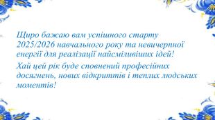 {5 C22544 A-7 EE6-4342-B048-85 BDC9 FD1 C3 A}Про інструктивно-методичні рекомендації щодо викладання навчальних предметів / інтегрованих курсів у закладах загальної середньої освіти у 2025/2026 навчальному році (лист МОН України від 13 серпня 2025 р. № 1/16828-25)Про внесення змін у методичні рекомендації щодо окремих питань здобуття освіти в закладах загальної середньої освіти в умовах воєнного стану в Україні (наказ МОН України від 20 серпня 2025 р. № 1162)Про окремі питання оцінювання результатів навчання (лист МОН України від 14 березня 2025 р. № 1/4895-25)Лист МОН від 24.06.2025 р. №1/13233-25 "Щодо Положення про учнівський олімпіадний та турнірний рух"Лист МОН №1/17526-25 «Про організацію 2025/2026 навчального року в закладах загальної середньої освіти»