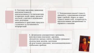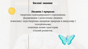 Базові знання. Людина і суспільство: соціум і спільноти: родини, стани, класи, нації, культурні, релігійні, етнічні та інші групи;взаємодія людей, інтереси і цінності, ідентичність і гідність людини; патріотизм; культура і цивілізація; інформація і медіа; толерантність та інклюзія; конфлікти та їх розв’язання.