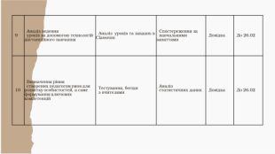 9 Аналіз ведення уроків за допомогою технологій дистанційного навчання Аналіз уроків та завдань в Classrom Спостереження за навчальними заняттями Довідка До 26.02 10 Визначення рівня створених педагогом умов для розвитку особистостей, а саме формування ключових компетенцій Тестування, бесіди з вчителями Аналіз статистичних даних Довідка До 26.02