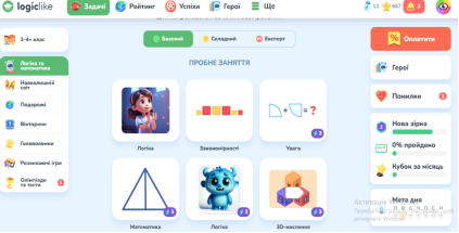 LogicLike.com (ЛогікЛайк) - освітній сайт для дітей 5-12 років. Це повноцінний комплекс для занять логікою і математикою.