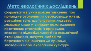 Освітній процес необхідно базувати на компетентнісно-орієнтованих завданнях, використовуючи місцевий природознавчий і краєзнавчий матеріал. Важливе значення для емоційно-естетичного сприйняття природи відіграють такі форми роботи: