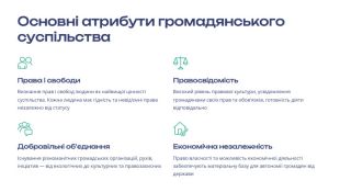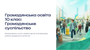 Громадянська освіта 10 клас. Тема "Громадянське суспільство". В презентації представлені еволюція уявлень про громадянське суспільство. Суть, атрибути та функції громадянського суспільства. Світовий досвід розвитку й консолідації громадянського суспільства.