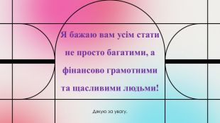 Дякую за увагу. Я бажаю вам усім стати не просто багатими, а фінансово грамотними та щасливими людьми!