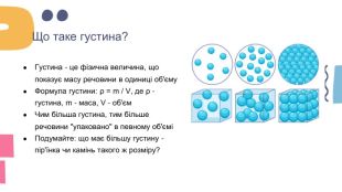 Що таке густина?Густина - це фізична величина, що показує масу речовини в одиниці об'єму. Формула густини: ρ = m / V, де ρ - густина, m - маса, V - об'єм. Чим більша густина, тим більше речовини "упаковано" в певному об'єміПодумайте: що має більшу густину - пір'їнка чи камінь такого ж розміру?