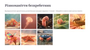 ШОКУЮЧИЙ ФАКТ95 % усіх живих організмів — безхребетніБезхребетні≈ 1,5 млн описаних видів. За оцінками вчених, загальна кількість може сягати 5–10 млн видів. Це найрізноманітніша група тварин на планеті. ХребетніЛише 5 % від усіх відомих видів — риби, птахи, плазуни, земноводні та ссавці. Попри вражаючу різноманітність, вони у меншості.