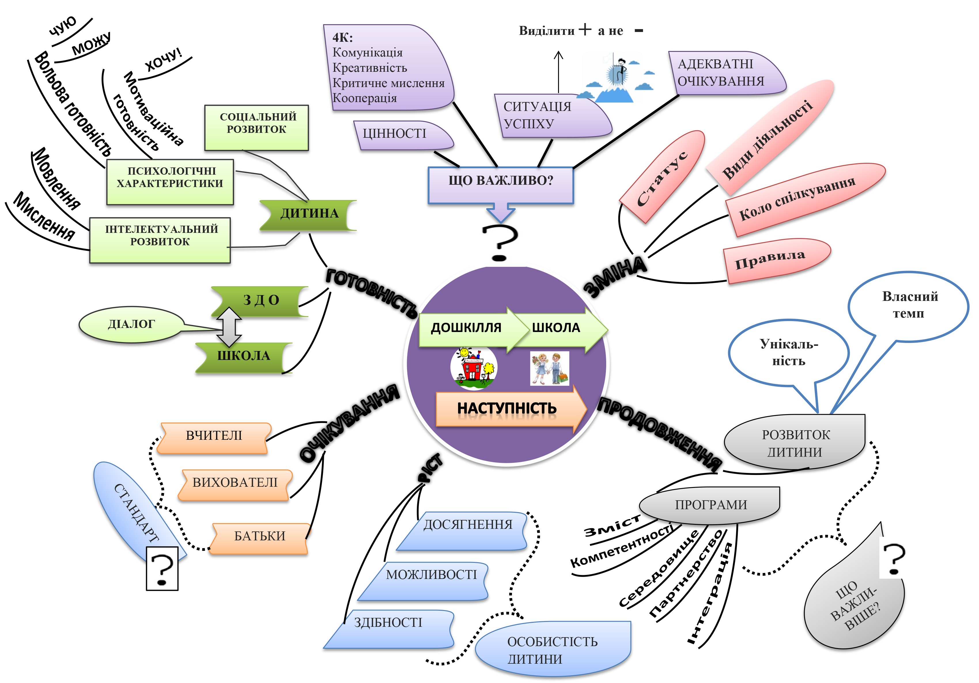 -Давайте розглянемо із вами одну із запропонованих карт «Наступність дошкілля і початкової освіти»