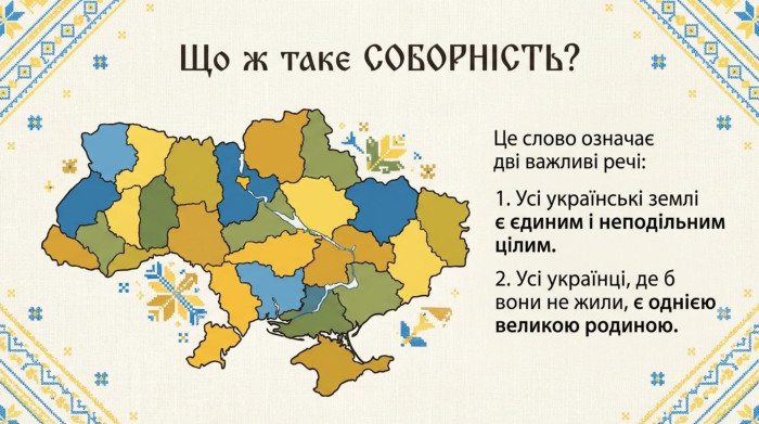 Інтерактивна презентація «День Соборності» (1-4 класи) Сучасний візуальний матеріал, що закохує в історію! Стильний дизайн (вишиванка + трендовий піксель-арт), адаптований для сприйняття малечею. Всередині: доступна історія свята, асоціативний кущ, гра «Так чи ні» та вправа «Ланцюг єдності». Повністю готовий контент для проведення виховної години.
