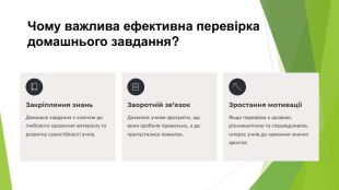 Цей матеріал детально висвітлює інтерактивні форми та методи перевірки домашнього завдання, що сприяють активізації мислення та підвищенню внутрішньої мотивації учнів. Презентація містить огляд сучасних цифрових інструментів (Kahoot, Wordwall, Quizizz) для автоматизації оцінювання та практичні поради щодо впровадження ігрових елементів і взаємоперевірки на уроках. Вчителям пропонуються дієві стратегії для поєднання традиційних підходів із новітніми технологіями з метою розвитку soft skills та критичного мислення школярів.