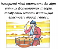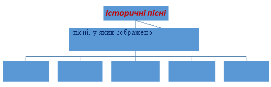 1. Позначте в схемі події, що надихали наших пращурів на створення історичних пісень.