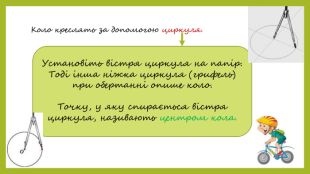 Коло креслять за допомогою циркуля. Установіть вістря циркуля на папір. Тоді інша ніжка циркуля (грифель) при обертанні опише коло. Точку, у яку спирається вістря циркуля, називають центром кола.