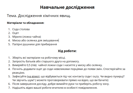 3. Виконайте дослід за інструкцією, зніміть коротке відео і надішліть вчителю.