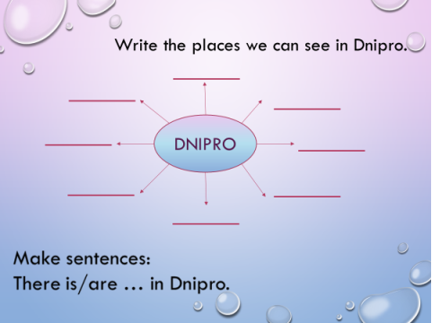 Look at task 3 on your worksheet. Write the places we can see in Dnipro.