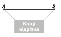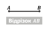 Відрізок – це частина прямої, що складається з усіх точок цієї прямої, які лежать між її точками, разом із цими точками. Ці точки називаються кінцями відрізка.
