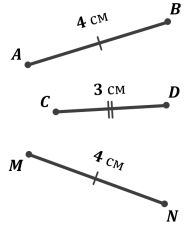 Рівні відрізки позначаються однаковою кількістю рисочок.