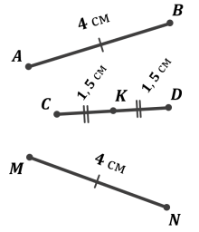 Серединою відрізка називають таку точку, яка ділить його на два відрізки рівної довжини.