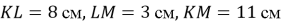 За основною властивістю вимірювання відрізків, довжина відрізка дорівнює сумі довжин частин, на які він розбивається його внутрішньою точкою. Отже, найбільша довжина дорівнює сумі двох інших довжин.