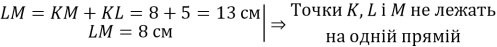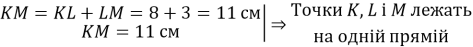 *Отже, щоб перевірити чи лежать три точки на одній прямій, необхідно перевірити, чи дорівнює найбільша відстань між точками сумі двох інших відстаней.
