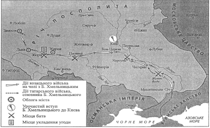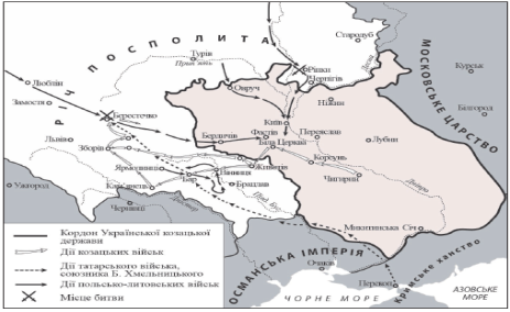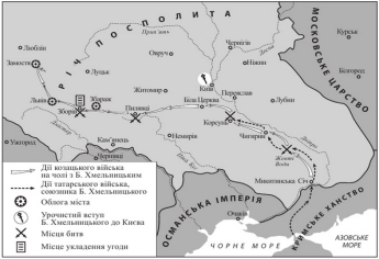 3. Події яких років козацької революції середини ХVІІ ст. проілюстровано на картосхемі: