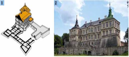 Що поєднує ці картинки? Яке призначення архітектурної споруди? Як тогочасні архітектори поєднували потребу оборони та запит замовників на зручності та розкіш?