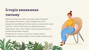 Історія виникненя тютюну. Куріння тютюну має майже 500-річну історію. Відкриття Христофором Колумбом у 1492р. Америки пов’язано з відкриттям європейцями багатьох нових для них рослин, серед яких був і тютюн. Незважаючи на заборону великого мореплавця, деякі з його моряків таємно привезли листя та насіння цієї рослини в Європу. Наприкінці 16 - початку 17 століття, паління почало поширюватись не лише в Європі, але й в інших частинах світу.