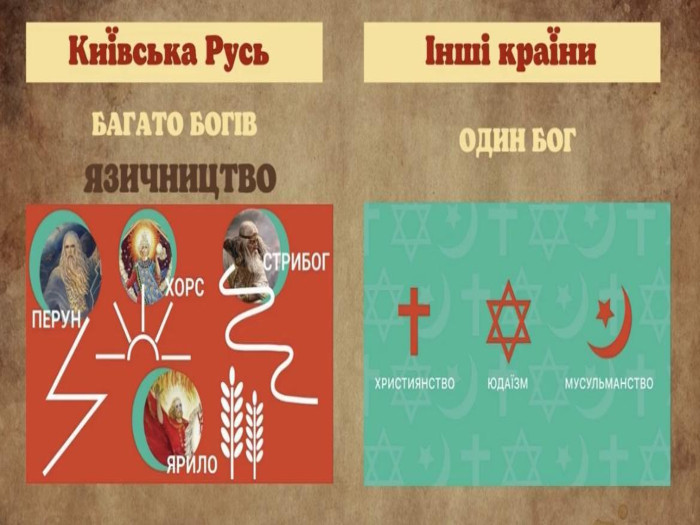 Запрошення до подорожі Сьогодні ми полинемо у далеке минуле… Рік 988. Київська Русь міцніла, їй дедалі частіше доводилося мати стосунки з іноземними країнами, у яких державною релігією було християнство. А Київська Русь залишалася язичницькою, тобто люди в ній вірили в багатьох богів.