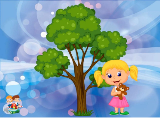 Погляньте з якої сторони стоїть дівчинка від дерева?