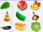 Вихователь: Подивіться уважно, які предмети вам нагадують форму овалу? (вихователь показує картинку, на якій 9 різних предметів, діти вказують на предмети, які схожі на овал)