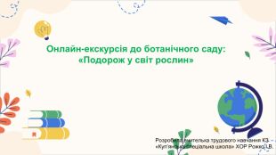 Онлайн-екскурсія до ботанічного саду: «Подорож у світ рослин»Розробила вчителька трудового навчання КЗ «Куп’янська спеціальна школа» ХОР Рожко І. В.