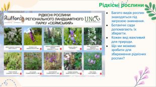 Рідкісні рослини. Багато видів рослин знаходяться під загрозою зникнення. Ботанічні сади допомагають їх зберегти. Кожен вид важливий для природи. Що ми можемо зробити для збереження рідкісних рослин?