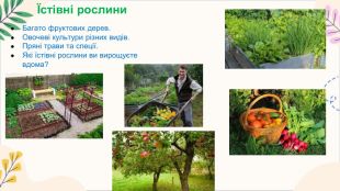 Їстівні рослини. Багато фруктових дерев. Овочеві культури різних видів. Пряні трави та спеції. Які їстівні рослини ви вирощуєте вдома?