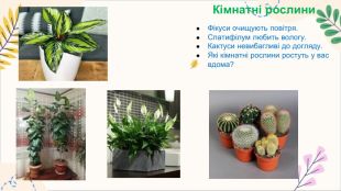 Кімнатні рослини. Фікуси очищують повітря. Спатифілум любить вологу. Кактуси невибагливі до догляду. Які кімнатні рослини ростуть у вас вдома?