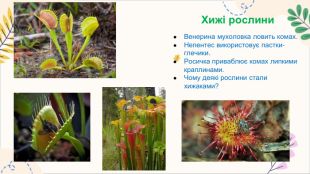 Хижі рослини. Венерина мухоловка ловить комах. Непентес використовує пастки-глечики. Росичка приваблює комах липкими краплинами. Чому деякі рослини стали хижаками?