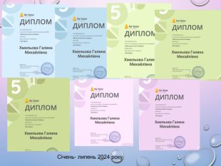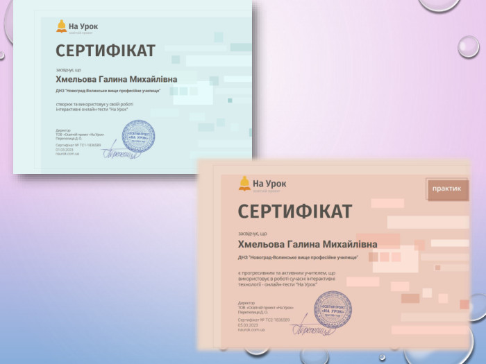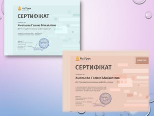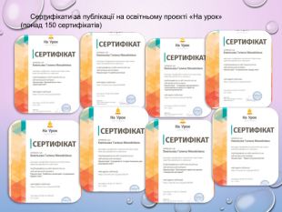 Сертифікати за публікації на освітньому проєкті «На урок» (понад 150 сертифікатів)