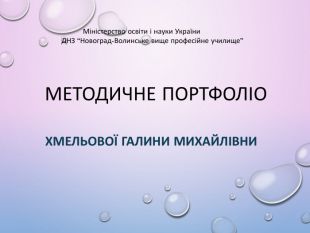 Методичне портфоліо. Хмельової Галини Михайлівни Міністерство освіти і науки України ДНЗ “Новоград-Волинське вище професійне училище”