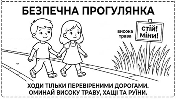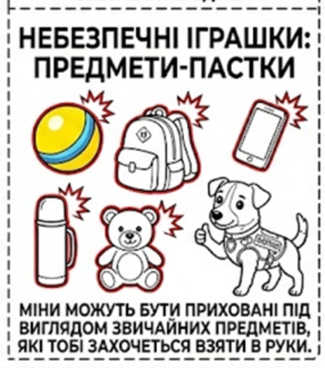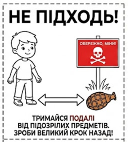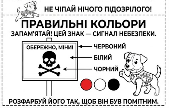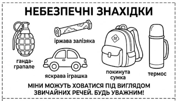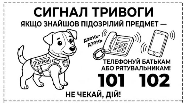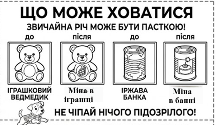 Матеріал розроблений дл яучнів початкової школи для повторення парвил поведінки з вибухонебнзпечними предметами