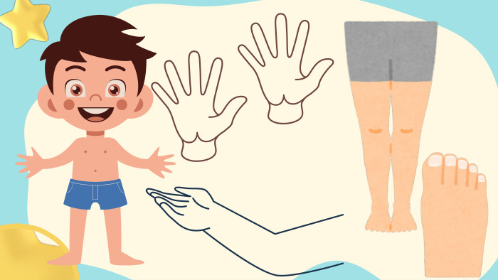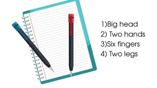 1)Big head2) Two hands3)Six fingers4) Two legs
